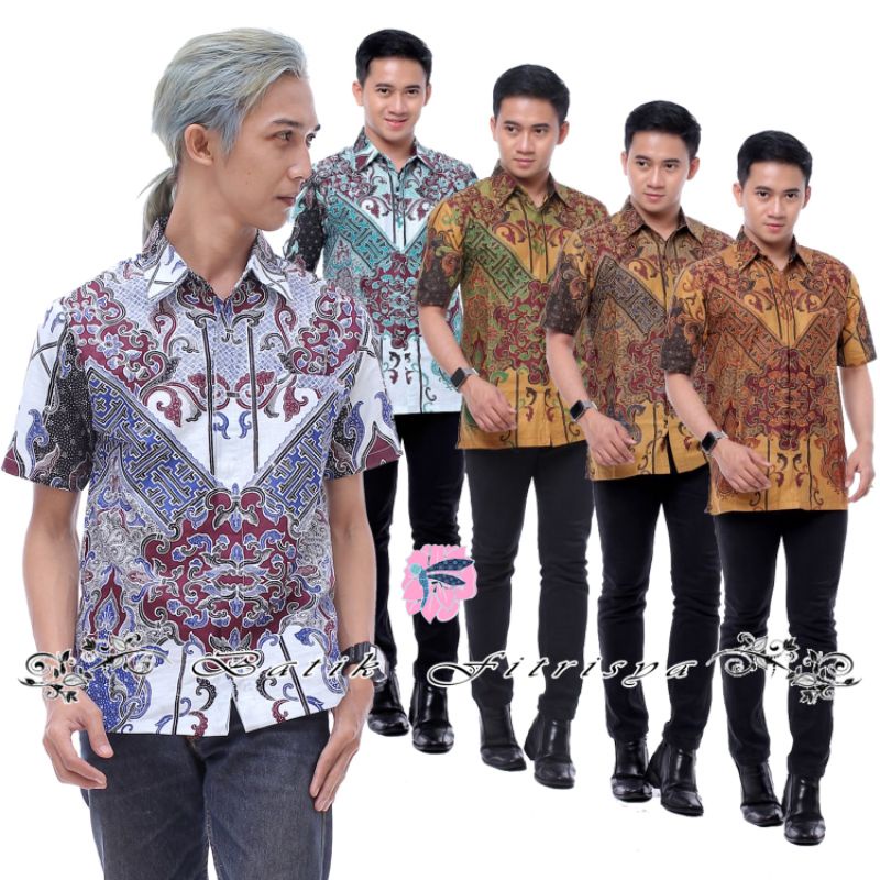 Terlaris Pakaian di Kota Subulussalam Hem Batik Premium Motif Silang Dinasti Warna Putih Tosca Biru Coklat Marun Hijau dari Batik Dinasti Kota Pekalongan
